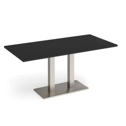 Eros rectangular dining table with flat brushed steel rectangular base and twin uprights 1600mm x 800mm - Black