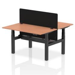 - Elevate your office with the Air Back-to-Back Height Adjustable Desk for two, a blend of ergonomics and connectivity. Each desk includes two Ethernet ports, a USB and USB-C port, and three UK plugs, complemented by integrated cable ports for a clean setup. The addition of a straight screen offers privacy and focus. This desk is a perfect match for professionals seeking a tidy, tech-friendly, and adaptable workspace.