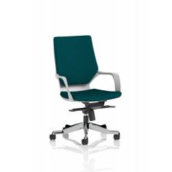 Elegant white or black acrylic shells cradle the most stylish of executive chairs - the Xenon. The shell swoops down from the generously proportioned backrest to integral slim, shaped, arms which fold around to the underside of the seat shell. A high quality knee tilt ensures maximum comfort and avoids discomfort through upper leg blood vessel constriction. High density moulded foams and an integral contoured lumbar support add to the easy-seating package. A brushed aluminium five star base continues the focus on sophisticated styling at ground level. In chemistry Xenon is a member of the noble gas family - in seating it is a member of the style and comfort family.
