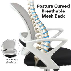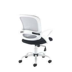 Tyler is an infinitely stylish, contemporary mesh back task chair that offers an executive feel in the constraints of a task chair. The chair comes with a modern white frame and integrated fixed arms with a contrasting black fabric seat pad, and the five-star steel curved base comes as standard in a white finish.