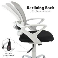- Tyler is an infinitely stylish, contemporary mesh back task chair that offers an executive feel in the constraints of a task chair. The chair comes with a modern white frame and integrated fixed arms with a contrasting black fabric seat pad, and the five-star steel curved base comes as standard in a white finish.