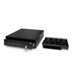 This Safescan SD-4141 Standard Duty Cash Drawer features a tough steel casing with a shatterproof PVC tray. Designed for standard duty use in canteens, cafeterias and more, the cash drawer has sturdy ball bearing rollers and a robust latch mechanism designed to last. The drawer comes with 8 coin cups and adjustable bank note dividers, allowing you to customise to your requirements. The three-position lock can be opened manually, or set to open automatically and comes with 2 keys. The black cash drawer measures W410 x D415 x H115mm.
