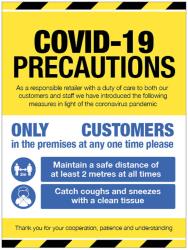 18423H: COVID 19 Precautions - Shop window sign Material: 1: Rigid Plastic Size: H (250x300mm)