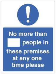 18427K: No more than (blank space) people in the premises at any one time Material: 1: Rigid Plastic Size: K (300x400mm)