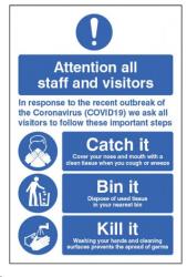 Attention all staff and visitors Catch it, bin it, kill it floor graphic 400x600mm