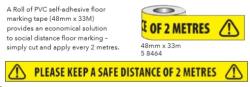 Please keep a safe distance of 2 metres Roll of PVC self-adhesive floor marking tape 48mm x 33M