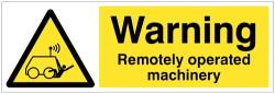 14316M: Warning Remotely operated machinery Material: 1: Rigid Plastic Size: M (600x200mm)