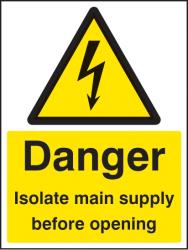 14011E: Danger isolate main supply before opening Material: 1: Rigid Plastic Size: E (200x150mm)
