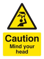 14216K: Caution mind your head Material: 1: Rigid Plastic Size: K (400x300mm)