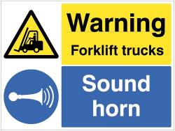 14528Q: Warning forklift trucks sound horn Material: 1: Rigid Plastic Size: Q (600x450mm)