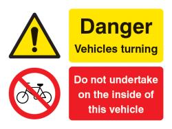 24046E: Do not undertake on the inside of this vehicle Danger vehicle turning Material: 2: Self Adhesive Vinyl Size: E (200x150mm)