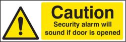 21738G: Caution security alarm will sound if door is opened Material: 2: Self Adhesive Vinyl Size: G (300x100mm)