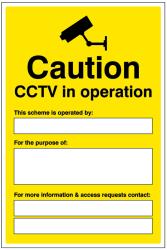 21747K: Caution CCTV in operation - with space for including scheme details Material: 2: Self Adhesive Vinyl Size: K (400x300mm)