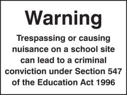 74231K: Warning trespassing or causing nuisance on a school site Material: 7: Ultra Durable 2mm PET Size: K (400x300mm)