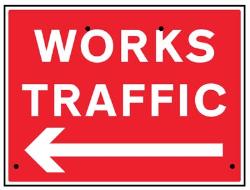 56427: Works traffic arrow left, 600x450mm Re-Flex Sign (3mm reflective polypropylene)