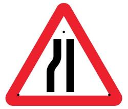 57484: Road narrowing left, 750mm triangle Re-Flex Sign (3mm reflective polypropylene)