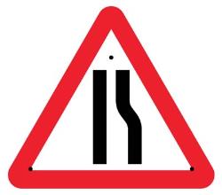57485: Road narrowing right, 750mm triangle Re-Flex Sign (3mm reflective polypropylene)