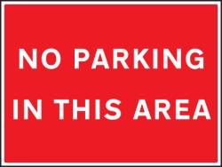 17571Q: No parking in this area Material: 1: Rigid Plastic Size: Q (600x450mm)