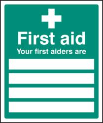 86004H: Your first aiders are Material: 8: Quick-Fix Rigid PVC with SAV Backing Size: H (300x250mm)