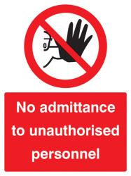 13201K: No admittance to unauthorised personnel Material: 1: Rigid Plastic Size: K (400x300mm)