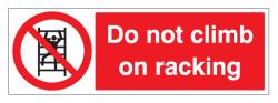 23219G: Do not climb on racking Material: 2: Self Adhesive Vinyl Size: G (300x100mm)
