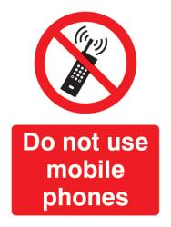 23607K: Do not use mobile phones Material: 2: Self Adhesive Vinyl Size: K (400x300mm)
