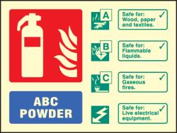 41233D: ABC powder extinguisher identification Material: 4: Photoluminescent S/A Vinyl Size: D (100x150mm)