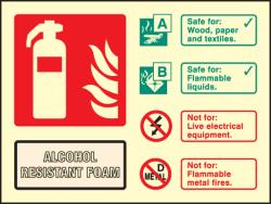 41245D: Alcohol resistant foam extinguisher identification Material: 4: Photoluminescent S/A Vinyl Size: D (100x150mm)