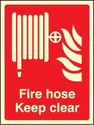 31007E: Fire hose keep clear Material: 3: Photoluminescent Rigid Size: E (200x150mm)