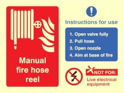 31072E: Manual fire hose reel with instructions for use Material: 3: Photoluminescent Rigid Size: E (200x150mm)