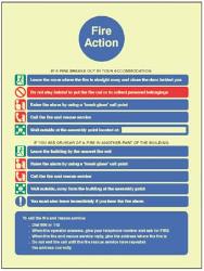 31414E: Action notice for housing with communal fire alarm and simultaneous evacuation strategy Material: 3: Photoluminescent Rigid Size: E (