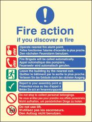 31435E: Multi-lingual fire action auto with lift Material: 3: Photoluminescent Rigid Size: E (200x150mm)