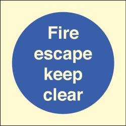 41605B: Fire escape keep clear Material: 4: Photoluminescent S/A Vinyl Size: B (80x80mm)