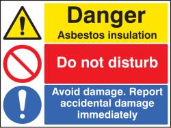 16273K: Asbestos insulation, do not disturb, report damage Material: 1: Rigid Plastic Size: K (400x300mm)