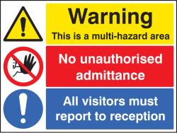 16274K: Multi hazard area, no unauthorised admittance, visitors reception Material: 1: Rigid Plastic Size: K (400x300mm)