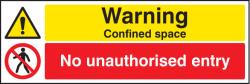 16211M: Warning confined space no unauthorised entry Material: 1: Rigid Plastic Size: M (600x200mm)