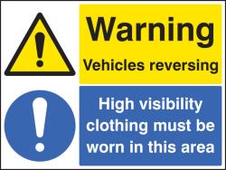 24032Q: Warning vehicles reversing high vis clothing must be worn Material: 2: Self Adhesive Vinyl Size: Q (600x450mm)