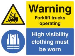 24047Q: Warning Forklift trucks operating High visibility clothing must be worn beyond this point Material: 2: Self Adhesive Vinyl Size: Q (60