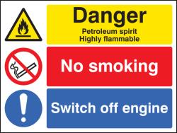 26201Q: Petroleum spirit/no smoking/switch off engine Material: 2: Self Adhesive Vinyl Size: Q (600x450mm)