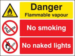 16227Q: Danger flammable vapour no smoking no naked lights Material: 1: Rigid Plastic Size: Q (600x450mm)