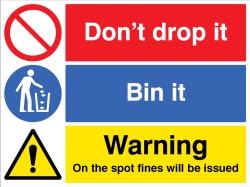 15495Q: Don't drop it - bin it! On the spot fines will be issued Material: 1: Rigid Plastic Size: Q (600x450mm)