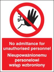 23243E: No admittance to unauthorised personnel (English/polish) Material: 2: Self Adhesive Vinyl Size: E (200x150mm)