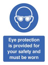 15002E: Eye protection provided for your safety and must be worn Material: 1: Rigid Plastic Size: E (200x150mm)