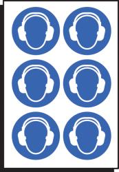 55036: Ear protection symbol 100mm dia - sheet of 6