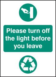 16620A: Please turn off light before you leave Material: 1: Rigid Plastic Size: A (100x75mm)