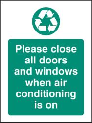 26628A: Please close all doors and windows when aircon is on Material: 2: Self Adhesive Vinyl Size: A (100x75mm)