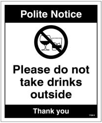17108H: Notice Please do not take drinks outside Material: 1: Rigid Plastic Size: H (300x250mm)