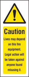 21243S: Caution lives may depend on fire equip Material: 2: Self Adhesive Vinyl Size: S (75x200mm)