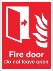 11078E: Fire door Do not leave open Material: 1: Rigid Plastic Size: E (200x150mm)
