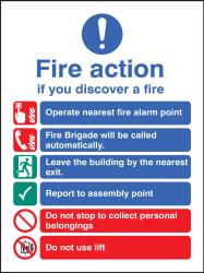 21408E: Fire action auto dial with lift Material: 2: Self Adhesive Vinyl Size: E (200x150mm)